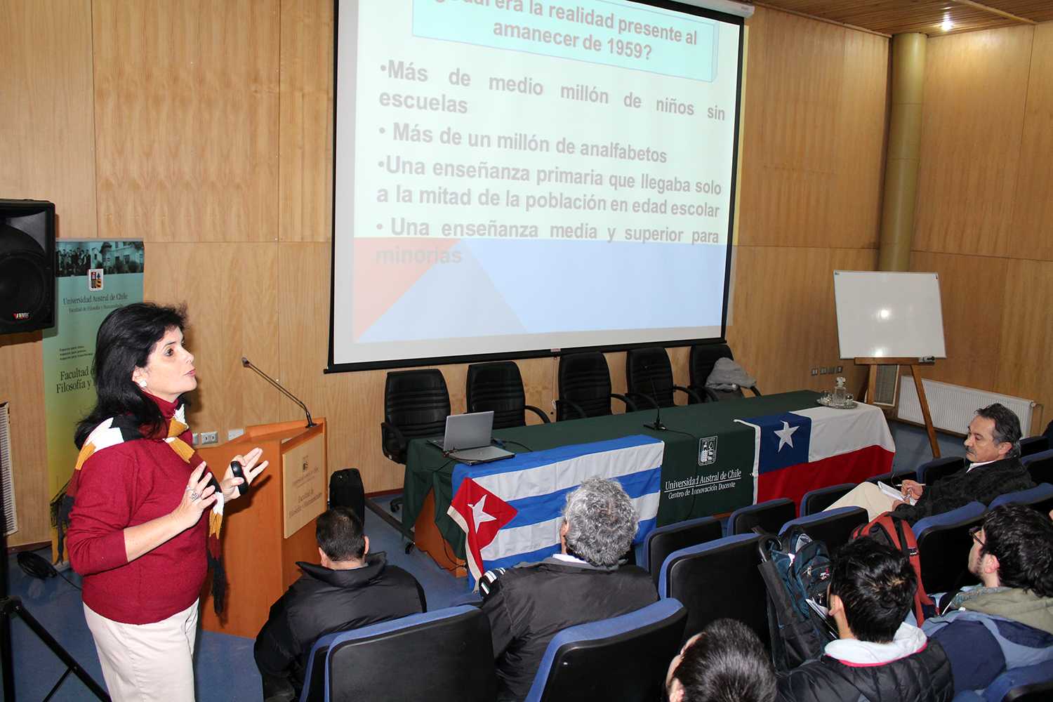 A su vez, repasó el Sistema educativo en Cuba previo a la Revolución, desde 1959 hasta 1970, desde 1971 hasta el año 2000, desde el año 2000 hasta hoy. Las campañas de alfabetización y cultura general integral. La equidad de la educación, concepción estudio-trabajo, principio de coeducación y diversidad, gratuidad, carácter democrático y enfoque de género. Finalizando con las contradicciones y desafíos futuros.