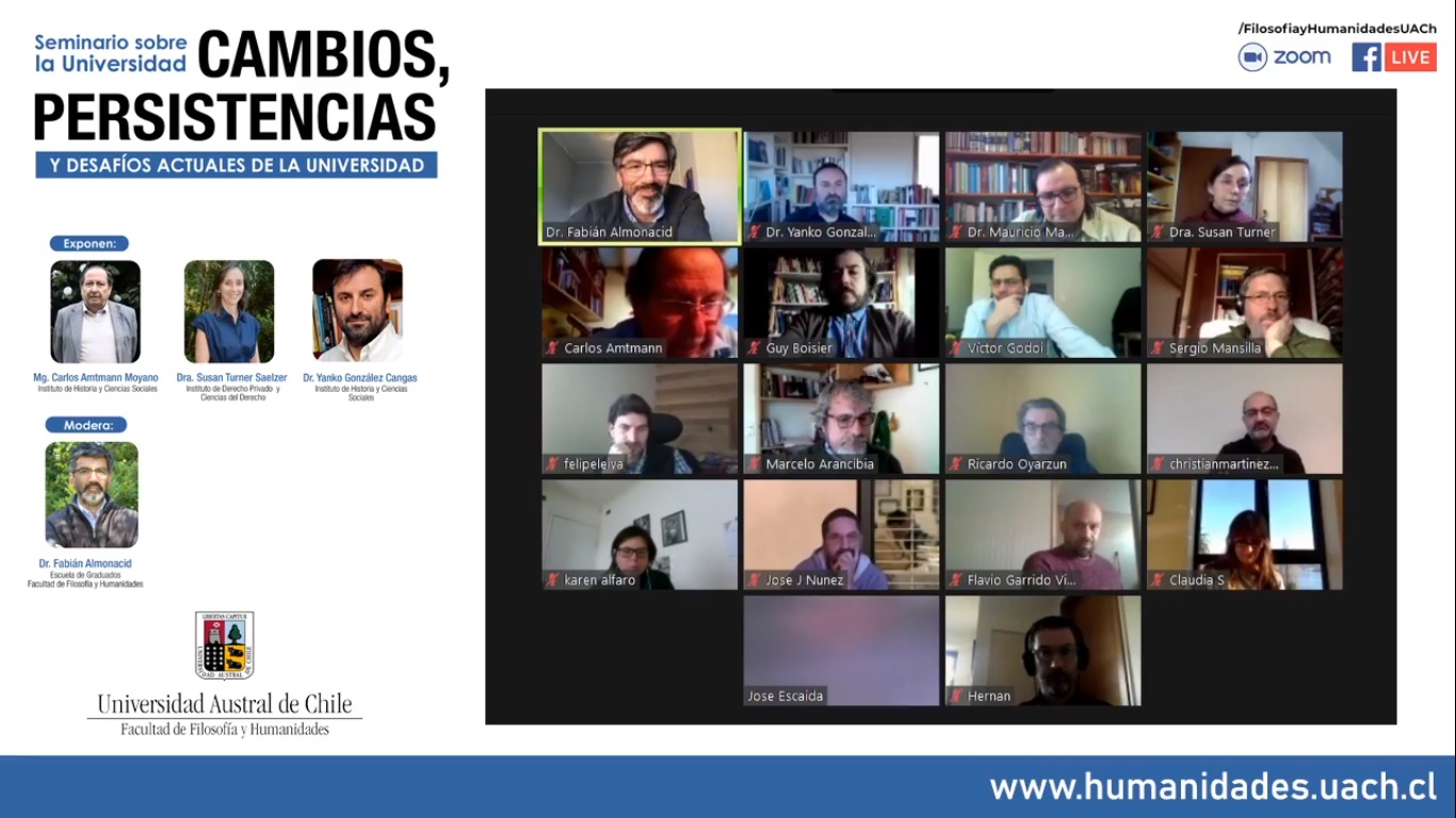Como coordinador y moderador del evento, el Dr. Fabián Almonacid, indicó que por medio de este seminario la Facultad de Filosofía y Humanidades decidió abrir un espacio de reflexión y discusión sobre la Universidad.