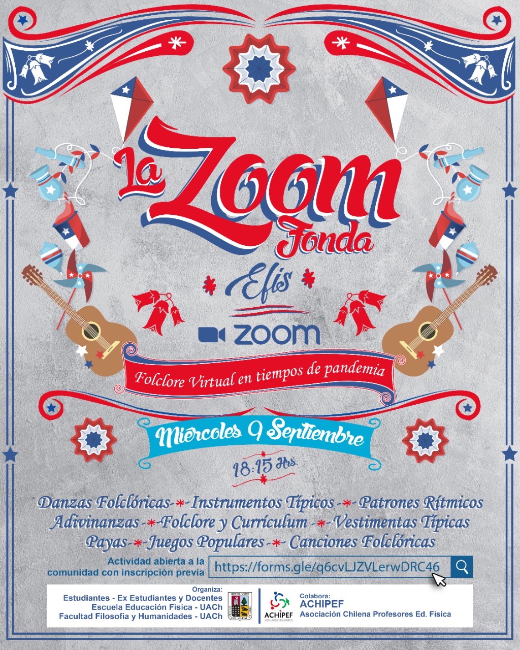 Se trata de una jornada denominada “Zoom Fonda: Folclore virtual en tiempos de pandemia”, la cual tiene como objetivo ofrecer una instancia de recreación y rescate de tradiciones por medio de actividades artísticas y deportivas, por medio de acciones vinculadas al desarrollo de patrones rítmicos, folclore y curriculum de dicha carrera.