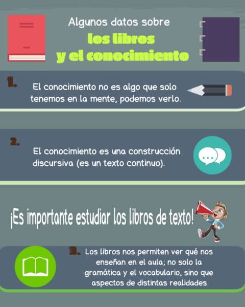 La disciplina de inglés como lengua extranjera tiene dos dimensiones fundamentales: el inglés y su enseñanza. Los libros de texto atienden a estas dos dimensiones y presentan, por un lado, los componentes de la lengua (vocabulario, léxico, gramática, textos) y, por otro, estrategias para conocer estos componentes y desarrollar las habilidades comunicativas que conducirán a la adquisición de la lengua.