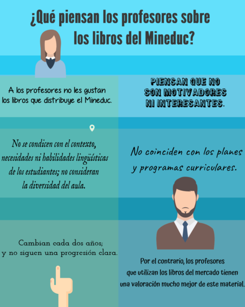 Sobre la relevancia de revisar estos textos, la docente comentó que “Es importante revisar este material desde un punto de vista empírico para explicitar qué conocimiento construyen y de qué manera. No nos parece responsable presentarles a los estudiantes libros escolares sin antes analizar los contenidos y su atingencia. Por ejemplo, se supone que los libros que distribuye el Mineduc son localizados a la realidad chilena, pero cuando uno analiza los elementos léxicos que presentan, duda de si se han adaptado realmente, porque nos encontramos con nombres como “Mike” o alimentos como “cheesecake” a los que no muchos estudiantes tienen acceso. Estos elementos serían fácilmente reemplazables por un nombre en español y un alimento más conocido en Chile. En resumen, es importante revisarlo porque es nuestra principal herramienta de trabajo. Conocerlo nos recuerda constantemente cómo se aprende una lengua extranjera y nos permite adaptarlo a nuestras necesidades”.
