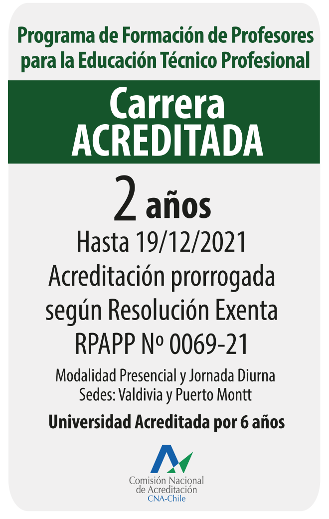 El Programa de Formación de Profesores para la Educación Técnico Profesional tiene como objetivos el instalar competencias didácticas y pedagógicas y el logro de aprendizajes de conocimientos, habilidades y actitudes requeridos por los enfoques activos de la gestión curricular. La base de esta formación es el compromiso con la Educación Técnico Profesional y la valoración de sus aportes al desarrollo de territorios en la zona sur austral del país.