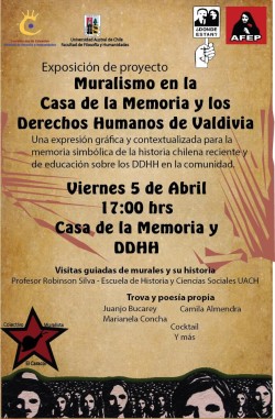 A partir de la premisa de que el muralismo es una herramienta estética y didáctica que, además de adornar los espacios, influencia la subjetividad y el imaginario colectivo mediante el contenido que expresa, es que nace el proyecto “Muralismo en la Casa de la Memoria y Museo de los Derechos Humanos de Valdivia”. El cual, a partir de la expresión gráfica y contextualizada, invita al cuestionamiento y reflexión en torno a la dictadura, los DD.HH, la historia y la educación en nuestro país.