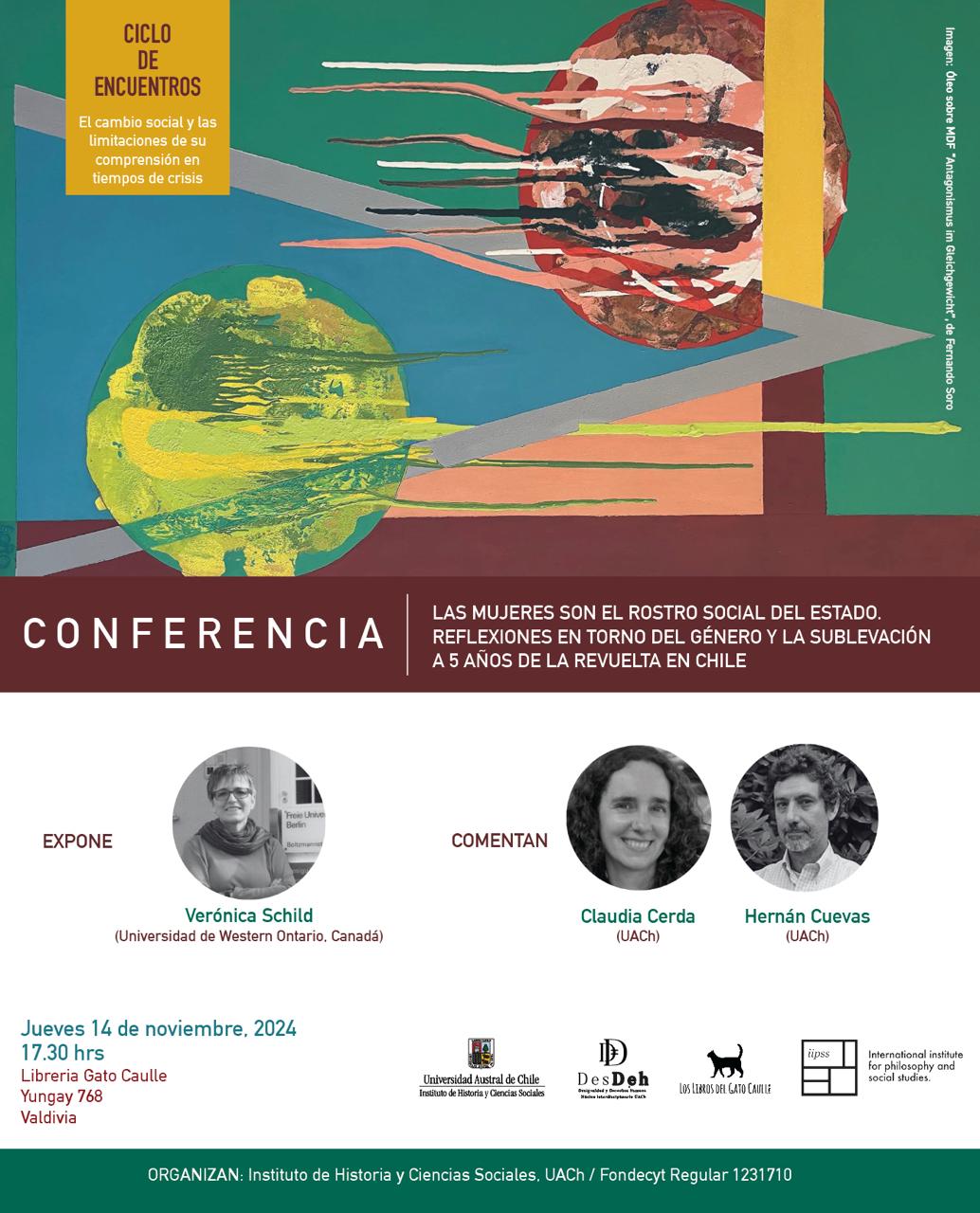 📣 El Instituto de Historia y Ciencias Sociales de la Facultad de Filosofía y Humanidades invita a ser parte de la Conferencia denominada “Las mujeres son el rostro social del Estado. Reflexiones en torno del género y la sublevación a 5 años de la revuelta en Chile”.