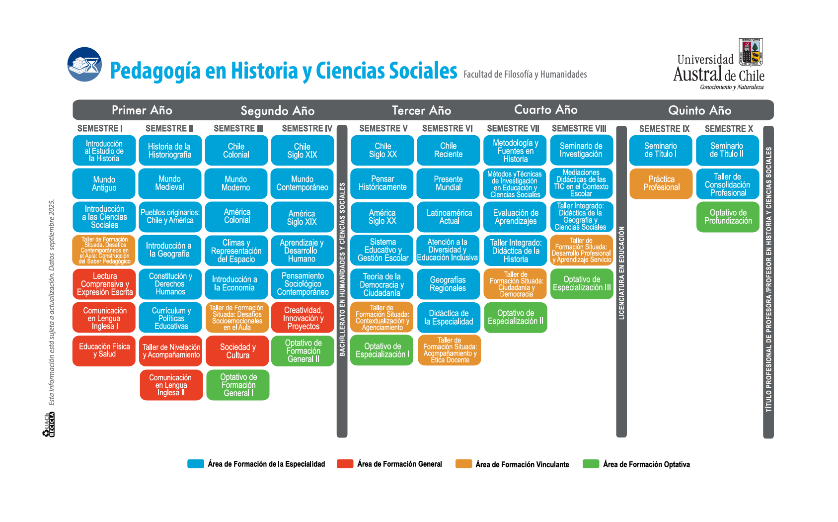 Ciclo de título profesional de Profesora/profesor de Historia y Ciencias Sociales de 302 créditos-sct, correspondiente a 10 semestres.
