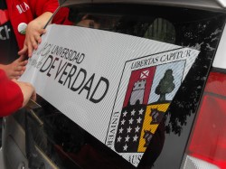 Un grupo de cuatro laborantes de la unidad de Relaciones Públicas visitó nuestro Centro de Innovación Docente (CIDFIL) para hacer entrega de chapitas y adhesivos para autos en el marco de la campaña Admisión 2012 “La UACh te responde, Universidad de Verdad“.
