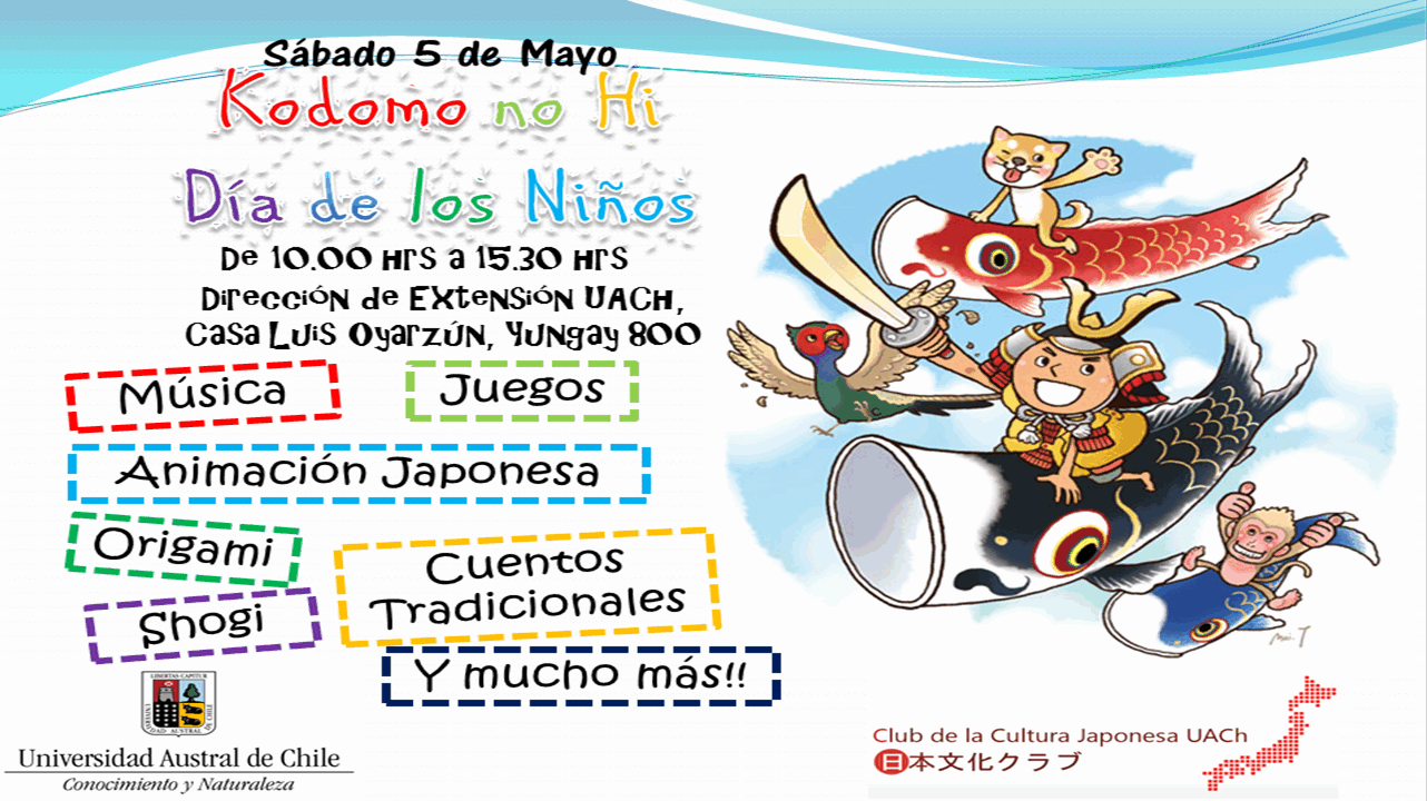 Los niños y niñas que visiten la Casa Luis Oyarzún, ubicada en Yungay 800, podrán disfrutar de distintas y muy entretenidas actividades, entre las que podemos mencionar: Daruma Otoshi; Kendama; Juegos japoneses para niñ@s; Elaboración de casco samurai con origami; Cuentos tradicionales japoneses: “kintaro”, Momotaro, Kaguya Hime; Construcción de Koinobori de papel; Escritura de nombre en japonés; Exposición con imágenes de la festividad; Animación japonesa; Ajedrez japonés: Shogi y Artes marciales.
