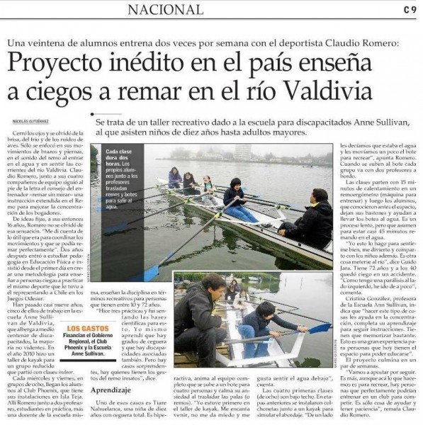 Es un taller recreativo para discapacitados de la Escuela Anne Sullivan de Valdivia. Por Nicolás Gutierrez – Publicado en El Mercurio 4 junio 2012