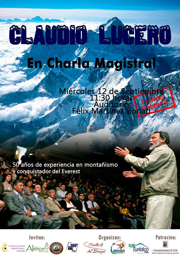 El miércoles 12 de septiembre a partir de las 11:30 horas podrán disfrutar de la charla magistral que el experto instructor en montañismo dictará en el Auditorio Félix Martínez Bonati.