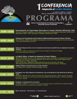 El CEAM de la UACh invita a la 1ª Conferencia sobre Adaptación al Cambio Climático, la actividad se realizará el lunes 26 de noviembre a las 15 horas en el Auditorio Nº 3 del Auditorio Nahmías.