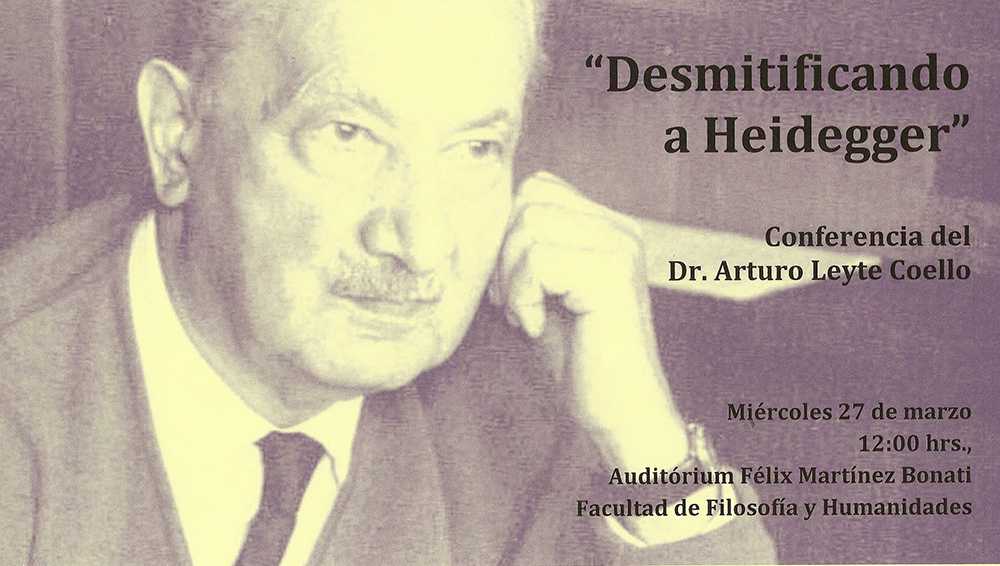 El Dr. Arturo Leyte Coello dictará la conferencia “Desmitificando a Heidegger”. La actividad se llevará a cabo a las 12:00 hrs., en el Auditórium Félix Martínez Bonati de la Facultad de Filosofía y Humanidades.