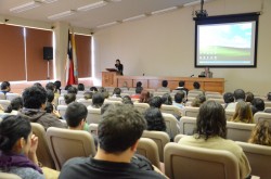 La clase magistral resultó, más bien, en una conversación o una presentación de los antecedentes del proyecto de investigación que iniciará junto al director del Instituto de Historia y Ciencias Sociales de la UACh, así presentó los efectos de la globalización en la economía agraria de las regiones del sur de nuestro país, principalmente de La Araucanía.