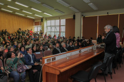 “Amar-Educa: la transformación cultural del educar” se denominó la charla realizada por el destacado biólogo Dr. Humberto Maturana y la Prof. Ximena Dávila co-fundadores del Instituto Matríztica. La actividad se desarrolló la mañana del viernes ante más de 500 personas en los auditorios del Edificio Nahmias del Campus Isla Teja y cerca de 150 que se conectaron on line a través de TV Austral.