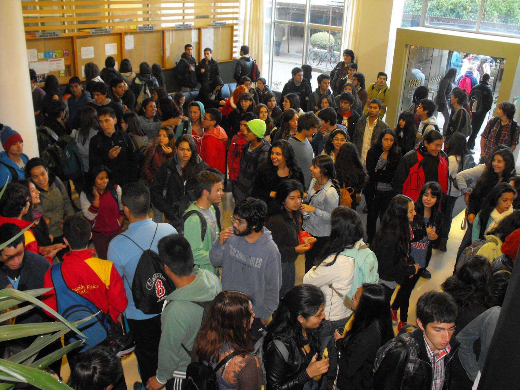 Cerca de 300 jóvenes completaron el Hall del Centro de Innovación Docente de la Facultad de Filosofía y Humanidades para escuchar la bienvenida que el Decano (s), Dr. Mauricio Mancilla, les dio a todos quienes ingresan a la UACh y a esta unidad.