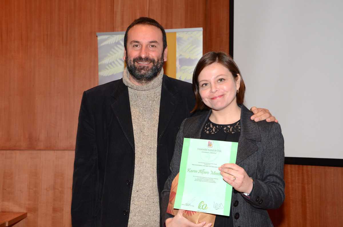 La directora de la Escuela de Pedagogía en Historia y Ciencias Sociales, Dra. Karen Alfaro Monsalve, resultó premiada por la Dirección de Vinculación con el Medio de la UACh por su permanente e importante relación con la comunidad local y regional.