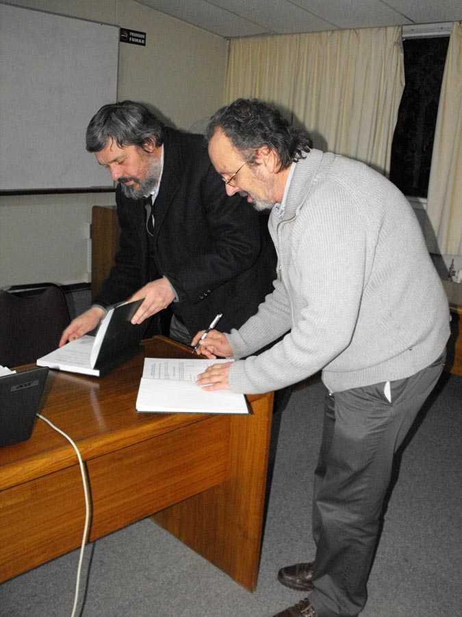 En dependencias de la Sala de Humanidades de la Facultad de Filosofía y Humanidades, el Dr. Bravo cumplió con el último requisito del proceso, realizar una presentación pública de la tesis con la que obtuvo el grado de Doctor en Ciencias Humanas, mención discurso y cultura.