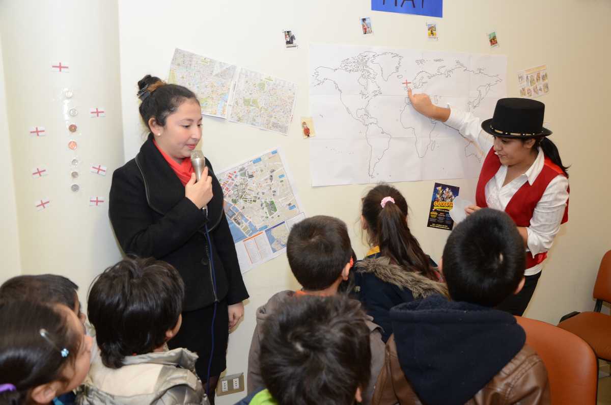 En cada sala, un oficial de inmigración timbró sus pasaportes (confeccionado por los mismos niños en sus establecimientos educacionales). Cada viaje acercó a los niños no solo a la lengua inglesa sino también a diversas culturas a través de bailes (Rusia), Juegos (Australia), títeres (China), canciones (Inglaterra) cuenta cuentos (India) y artes culinarios (Brasil).