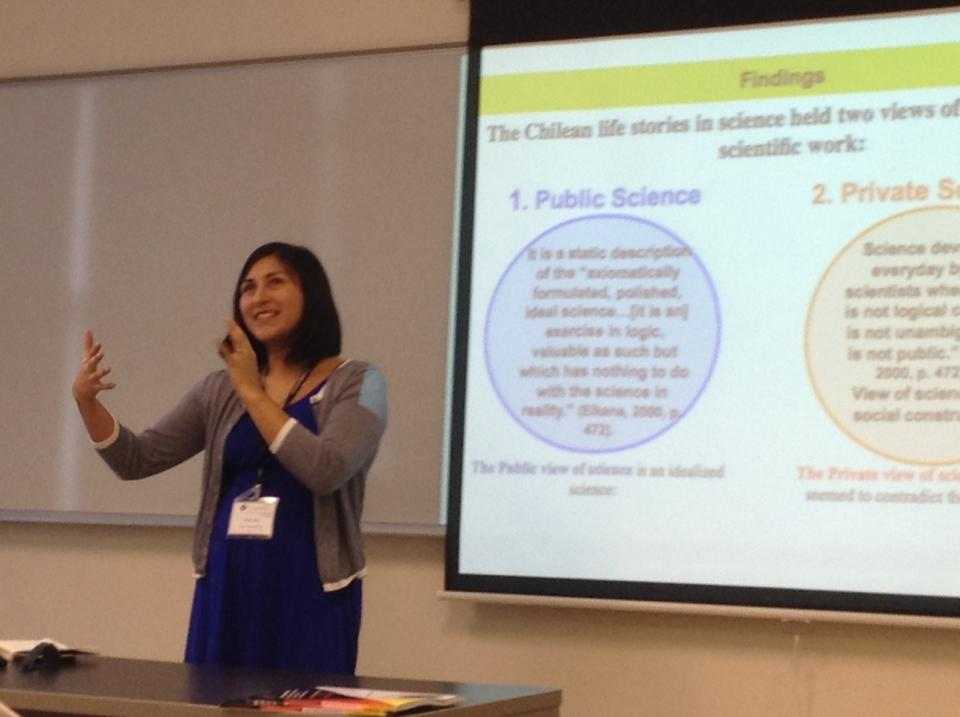 Participé en el área de educación terciaria, específicamente en la mesa de ciencias y matemáticas. Allí presente, en inglés, parte de una investigación que realicé durante mis estudios doctorales, titulada Aprendiendo a ser científico en Chile: visiones de estudiantes de postgrados chilenos sobre practicar ciencia desde ña niñez a la adultez”.