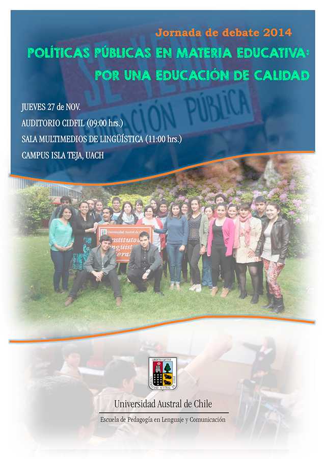 Con el auspicio de la Escuela de Pedagogía en Lenguaje y Comunicación y en el marco de la asignaturas Tipos y Géneros y Argumentación y debates, se realizará la actividad a partir de las 09:00 hrs. en el Auditorio CIDFIL. El segundo ciclo se desarrollará entre las 11:00 y las 16:00 hrs. en la Sala Multimedios del Instituto de Lingüística y Literatura.