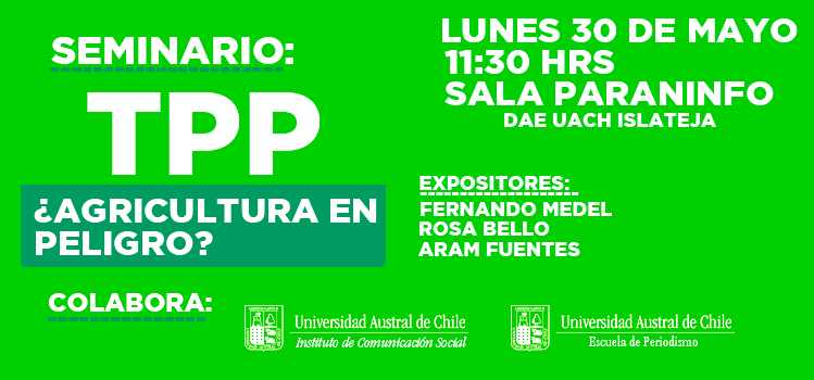 tpp-UACHEl seminario abordará los alcances del Acuerdo Transpacífico de Cooperación Económica (TPP por sus siglas en inglés) enfocado a la agricultura. Para ello contarán con tres expositores que presentarán distintas visiones sobre el tema, ya que a juicio de los organizadores “el tratado contiene mucho misterio por parte los organismos firmantes.
