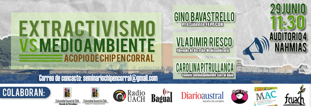 Este evento tendrá como invitados a Gino Bavastrello, Presidente de la Federación de Pescadores Artesanales de Corral (FEPACOR), Vladimir Riesco, abogado de Derecho Ambiental y a Carolina Pitrullanca, integrante del comité Medioambiental de Corral Bajo.
