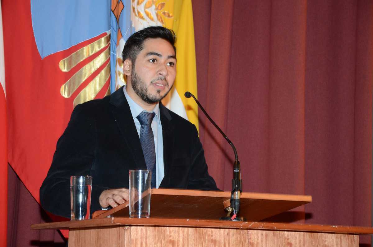 Una vez finalizada la entrega de títulos profesionales, el egresado Héctor Vidal Carrasco, subió al escenario para entregar unas emotivas palabras a sus compañeros y compañeras, así como también a sus familiares y docentes.