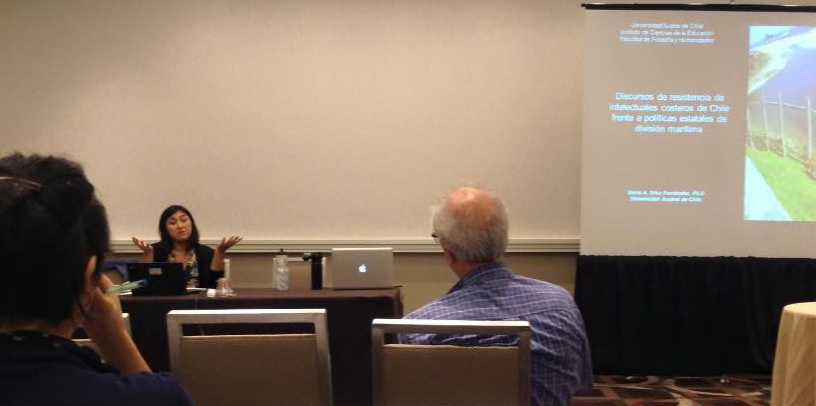 La presentación en LASA versó sobre el resultado del análisis del discurso disidente un grupo de líderes de comunidades costeras del sur de Chile en cuanto a sus condiciones socioambientales: su organización social, identidad, historia y visión de futuro a partir de la imposición estatal de la división del mar por la Ley de Pesca.
