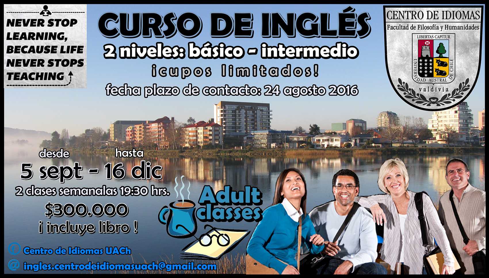 Inscripciones hasta el miércoles 24 de agosto al correo ingles.centrodeidiomasuach@gmail.com