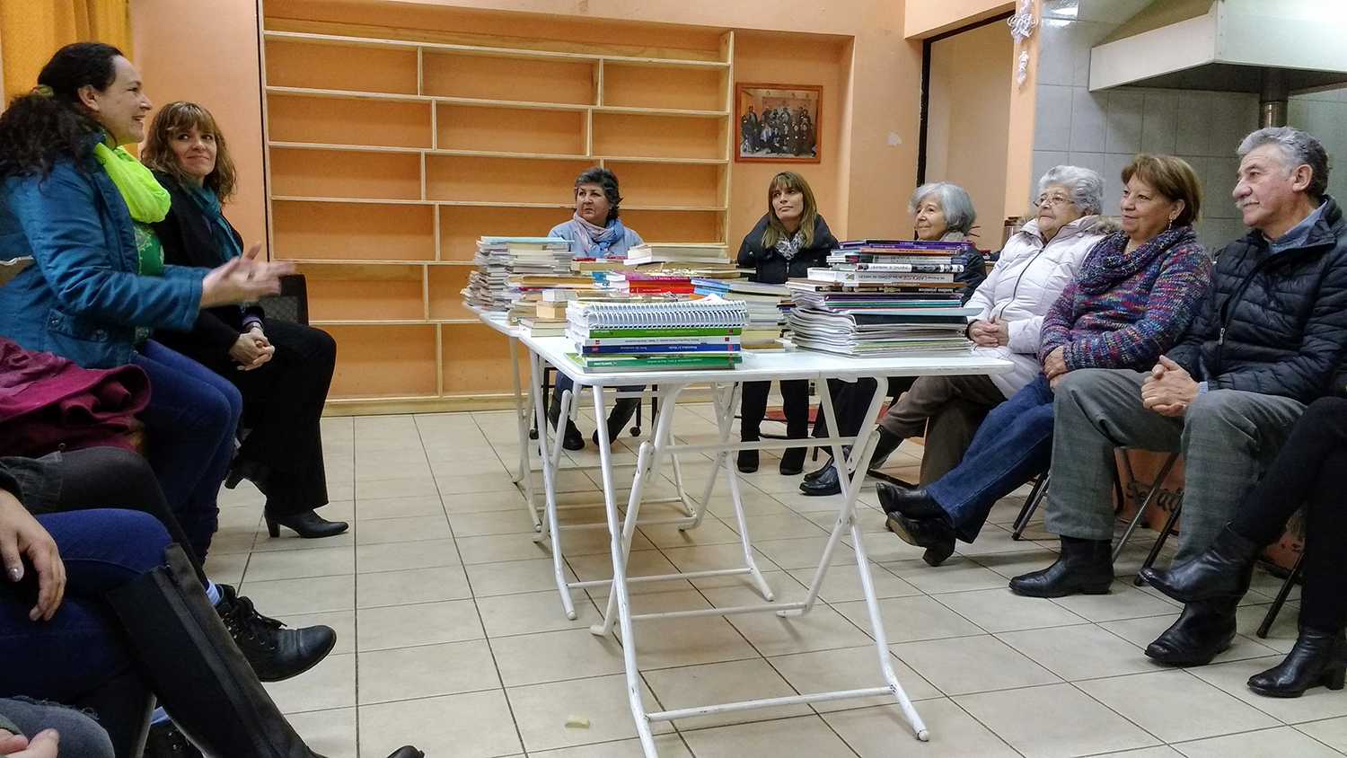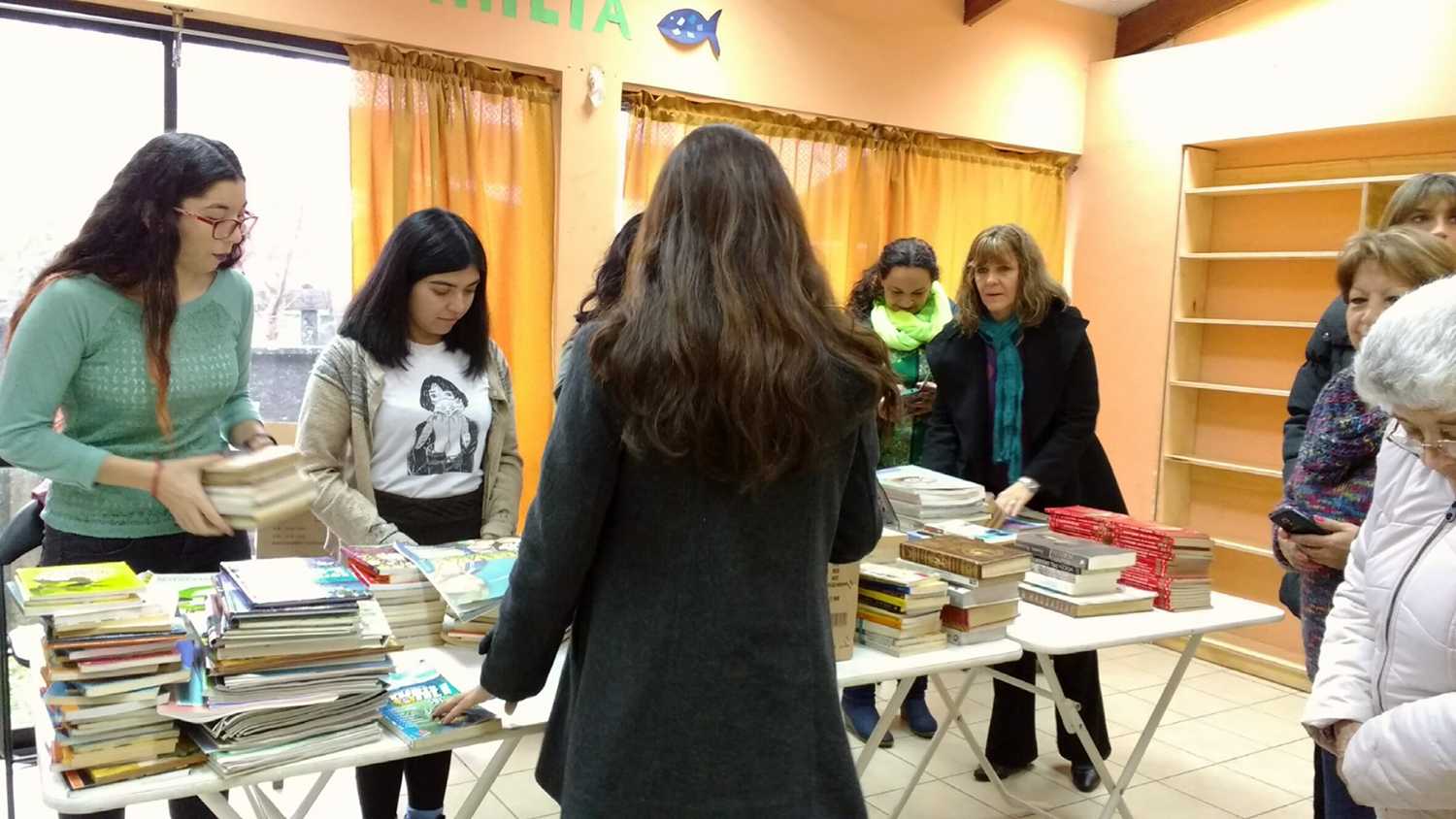 A comienzos de junio, las estudiantes del taller de Formación de Mediadores de lectura, acompañadas de las profesoras Mónica Munizaga y Claudia Rodríguez, donaron los libros al comedor San José de la Isla Teja, espacio en el que funcionará la biblioteca comunitaria. El comedor atiende a numerosas personas y desarrolla diversos talleres para la comunidad.