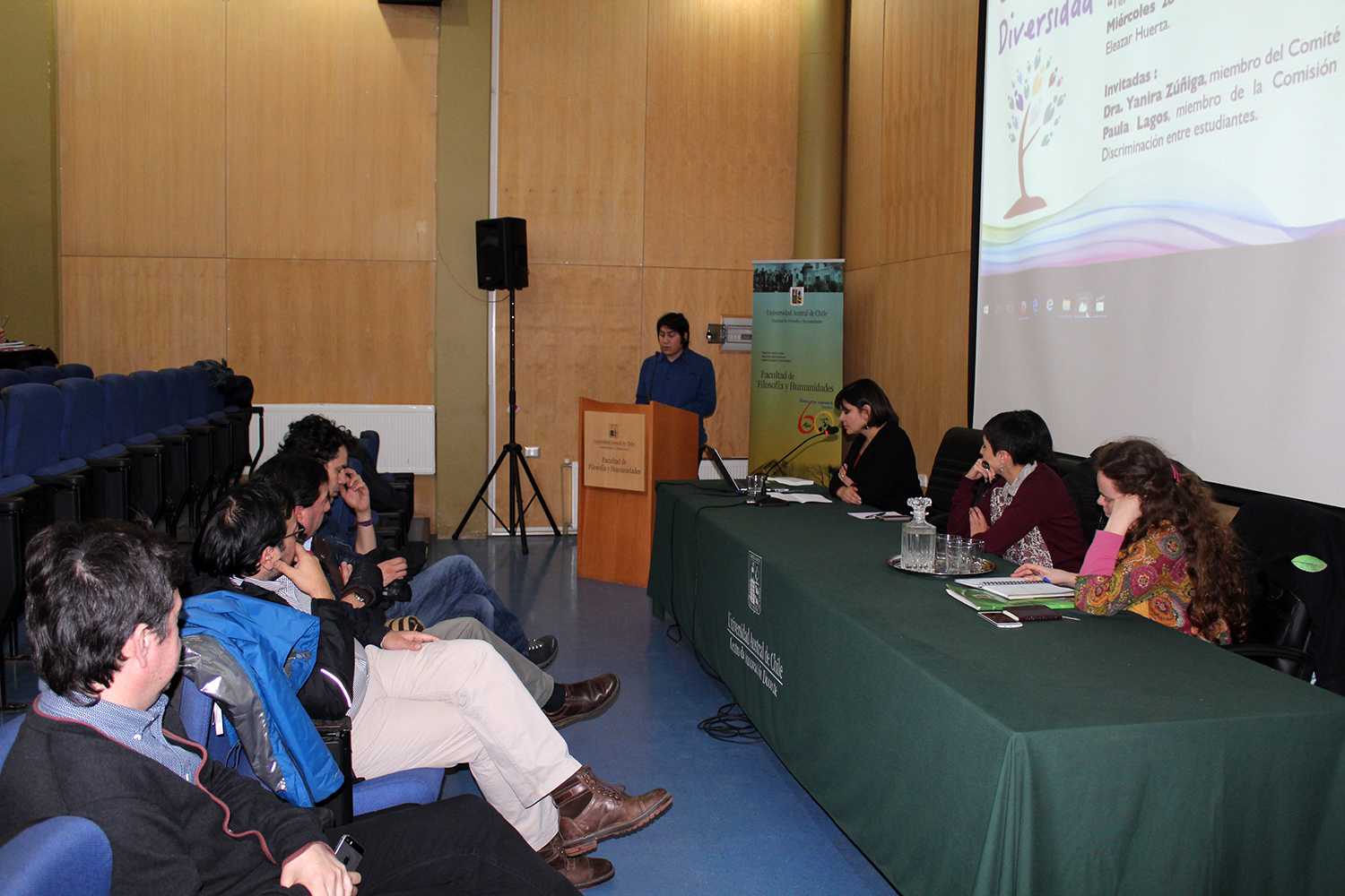 Con las Dras. Karen Alfaro, Prodecana de nuestra Facultad y Yanira Zúñiga, Prodecana de la Facultad de Ciencias Jurídicas y Sociales, Paula Lagos de la FEUACh y Claudia Corbalán, Secretaría Ejecutiva de la Comisión para la Intervención en Situaciones de Acoso, Violencia y Discriminación entre estudiantes en el panel, se desarrolló el primer conversatorio destinado a promover las políticas que impulsa la Corporación para democratizarse, promover un espacio libre de acoso y violencia además de aportar a la desnaturalización de los dispositivos de lenguaje y práctica discriminatoria del género.