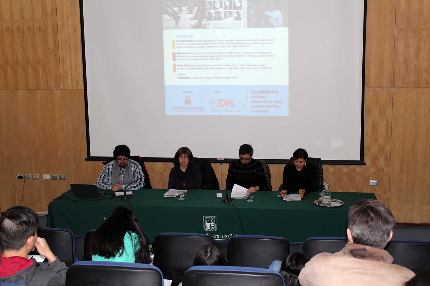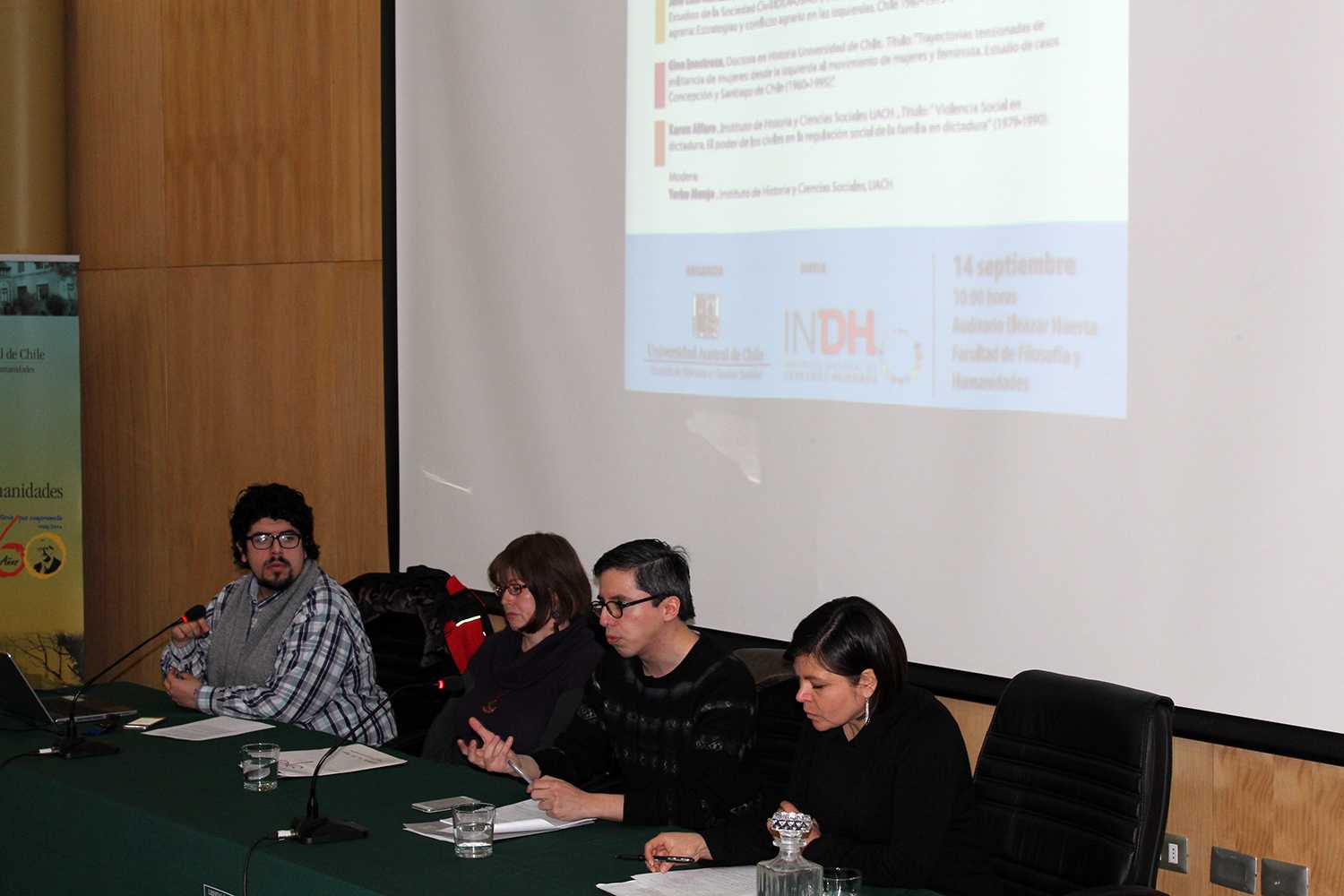 En el marco del acuerdo de cooperación que la unidad tiene con el Instituto Nacional de Derechos Humanos se organizó la jornada que contó con la participación de la Dra. Karen Alfaro, de la Dra. © Gina Inostroza y del Mg. en Ciencias Sociales, José Luis Morales, las presentaciones fueron moderadas por el Profesor de Historia y Ciencias Sociales y Mg. © en Historia del Tiempo Presente, Yerko Monje.