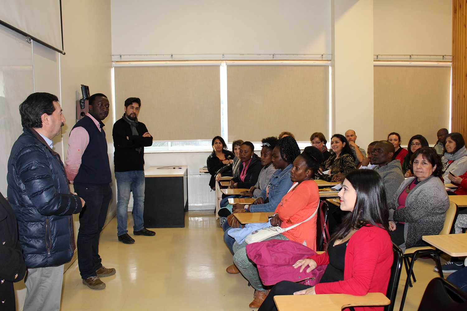 Las actividades se iniciaron el pasado viernes en dependencias del Edificio Eleazar Huerta de la Facultad de Filosofía y Humanidades de la UACh.  El curso de español se realizará en la UACh y en dependencias de la Universidad San Sebastián, cada viernes y sábado, y se extenderá hasta mediados de enero del próximo año. Más de 20 voluntarios forman parte del proyecto, docentes y estudiantes se unen para apoyar el proceso de inserción de este grupo de inmigrantes a la sociedad chilena.