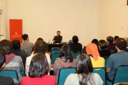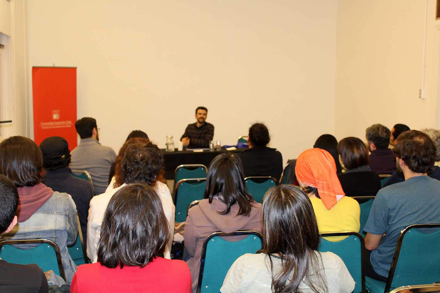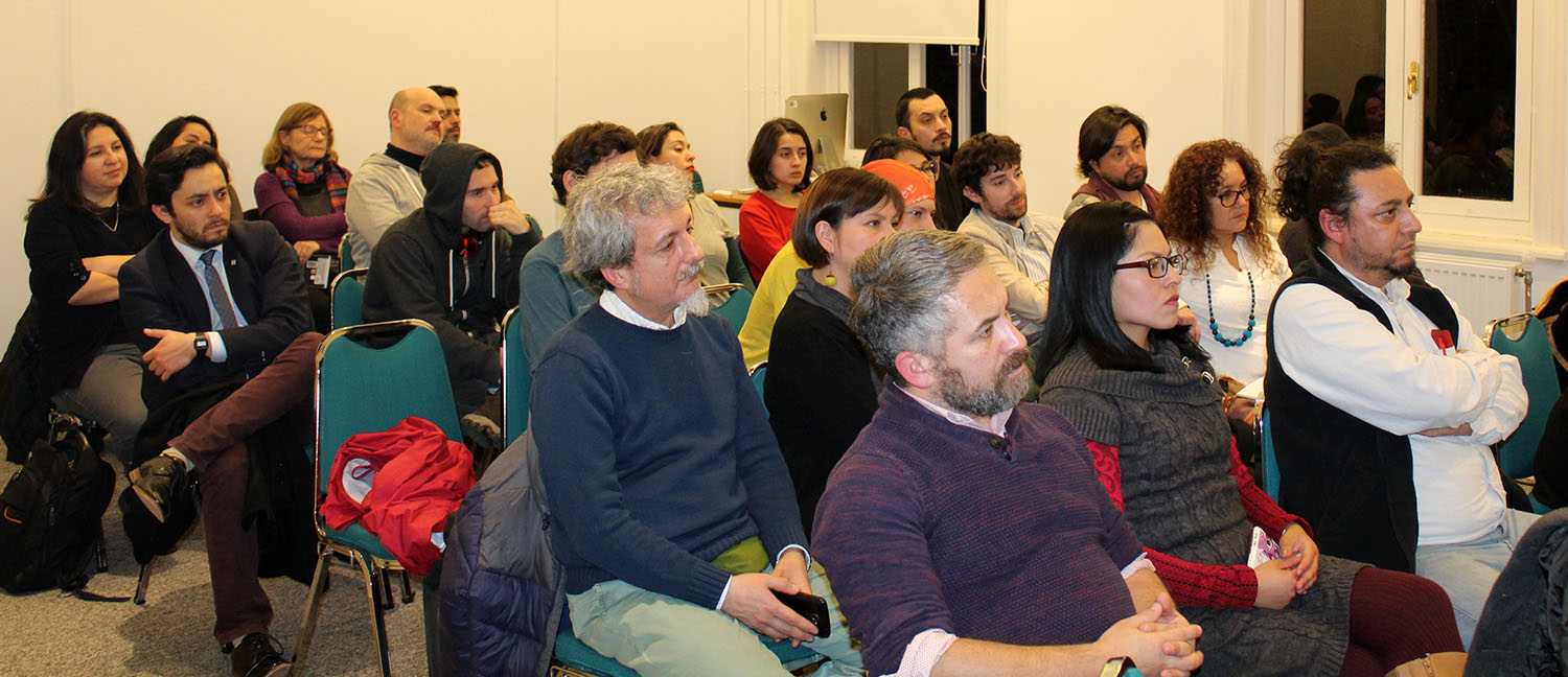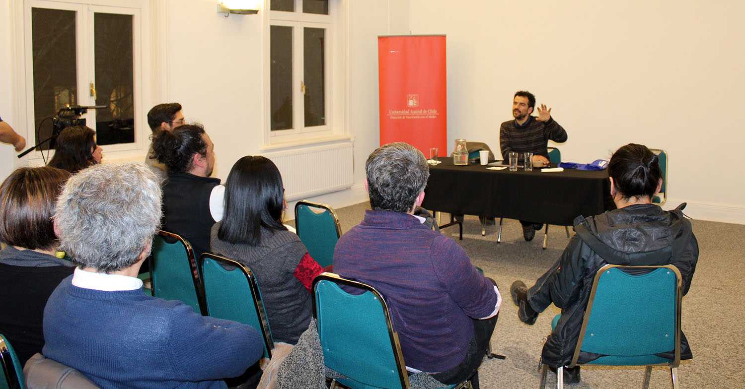 Los docentes Alberto Galaz e Iván Oliva presentaron la actividad y acompañaron al Dr. Bellei durante la charla realizada en Casa Luis Oyarzún.