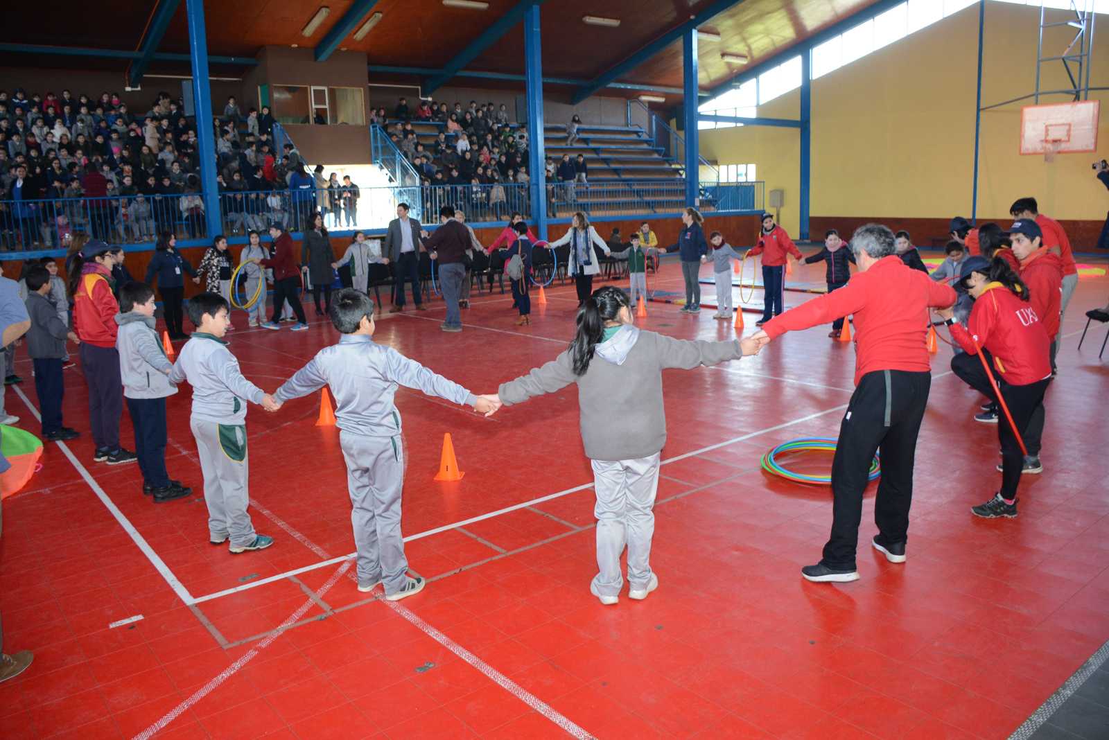 El inicio del proyecto se realizó la mañana de hoy miércoles 12 de septiembre en el gimnasio de la Escuela Teniente Merino de Valdivia -el que tiene una matrícula de 1.103 alumnos y 37 cursos, desde kínder a cuarto medio- donde serán beneficiados directamente alrededor de 350 estudiantes del primer ciclo básico, quienes en esta primera sesión se divirtieron junto autoridades regionales, académicas y comunidad educativa presentes en la actividad.