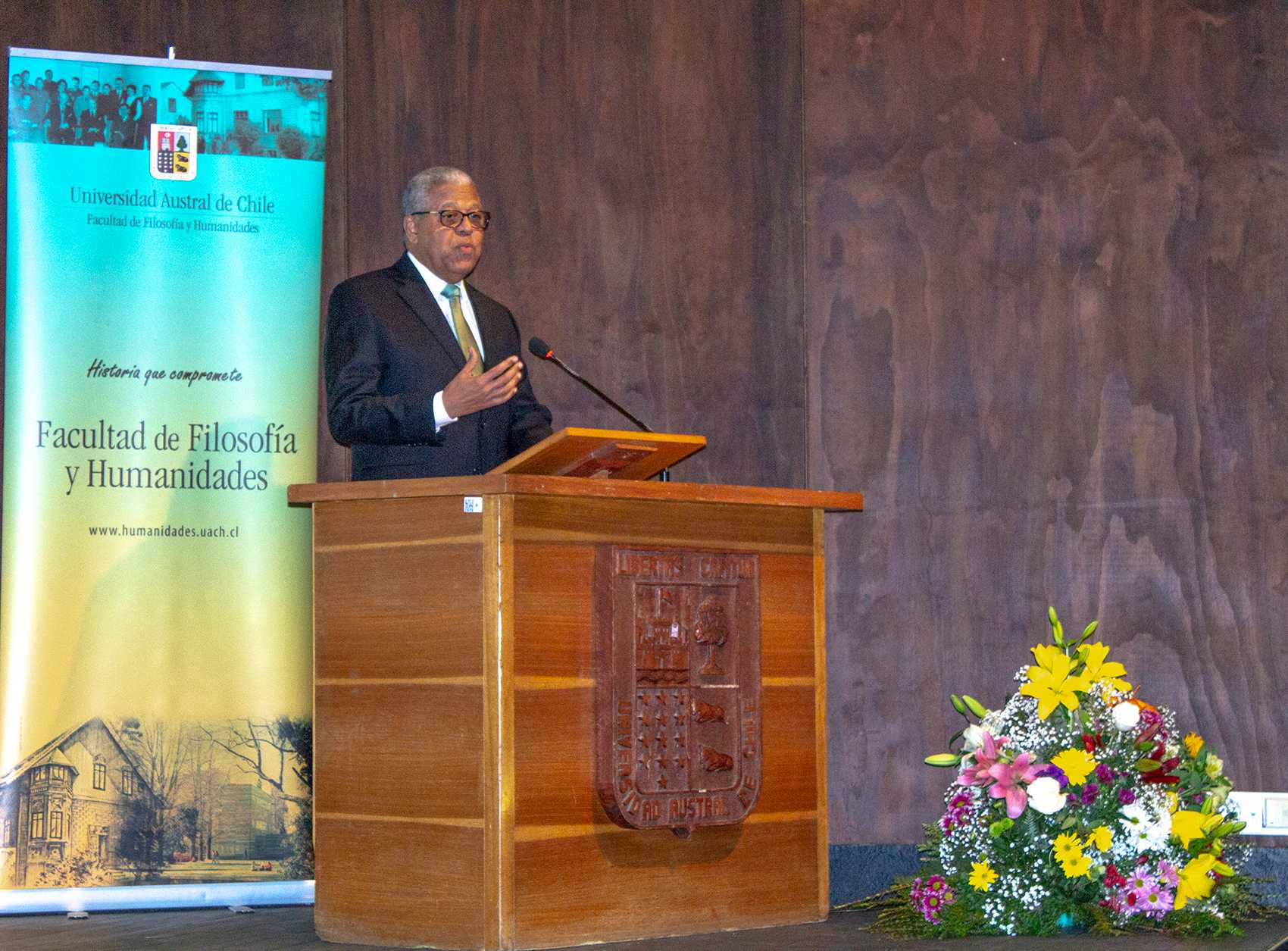 La ceremonia inició con las palabras del Decano Dr. Mauricio Mancilla, quién destacó la relación de la Facultad de Filosofía y Humanidades con la Embajada de República Dominicana y la Fundación Juan Bosch que se inició con la finalidad de hacer honor a la memoria del destacado intelectual y político dominicano.