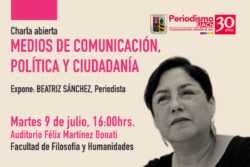 Entre ellas, dará una charla abierta a la comunidad universitaria –particularmente a estudiantes y graduados de la Escuela de Periodismo, académicos/as y estudiantes de doctorado y magíster en comunicación– centrada en la relación entre medios de comunicación, política y ciudadanía, la que se llevará a cabo el próximo martes 9 de julio a las 16.00 hrs. en el Auditorio Félix Martínez Bonati (Facultad de Filosofía y Humanidades, Campus Isla Teja).