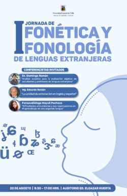 “Los oradores llevarán a cabo charlas generales específicas que abarcarán desde la descripción global de conceptos, nociones y teorías, hasta aplicaciones en la enseñanza de lenguas, pasando por métodos de análisis y estudio. La jornada está enfocada para docentes y estudiantes de lenguas, especialmente extranjeras, con el objeto de provocar un primer acercamiento especializado en las áreas de fonética y fonología que sirva como fuente teórica y de desarrollo de instrumentos de enseñanza y evaluación”, mencionó.