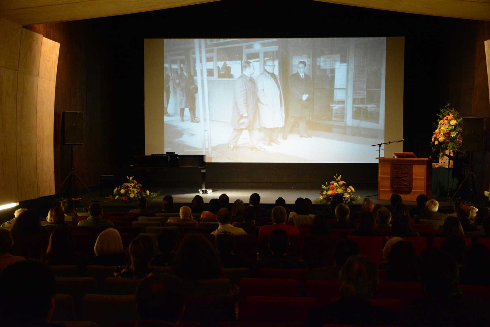 Con la presentación de un diaporama con fotografías que reúnen parte importante de la historia de los espacios fundacionales de la Universidad Austral de Chile (UACh) dio inicio a la ceremonia con la que el Cine Club y la Facultad de Filosofía y Humanidades despidieron –de manera simbólica– dicha construcción. Simbólica, pues ya están en marcha los trabajos para desmontar la antigua estructura y la construcción de un nuevo edificio que albergará en el mismo lugar a ambas unidades académicas en aproximadamente dos años.