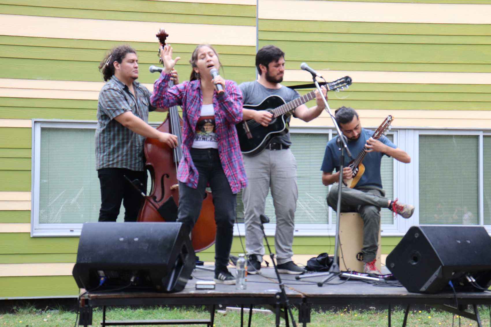 Un variado show artístico cultural se realizó durante la jornada del pasado viernes 6 de marzo en el exterior del edificio Eleazar Huerta de la Facultad de Filosofía y Humanidades de la UACh. La actividad se enmarcó dentro de la semana de recepción para estudiantes de cursos superiores denominada “Cruzando el puente: Reencontrarnos para un nuevo Chile desde las Humanidades y las Ciencias Sociales”, la cual inició con una competencia de freestyle y contó con la participación de músicos locales como Camilo Eque, Cuarto Trio, Isleña Antumalen y con la poesía de Sergio Mansilla, Jorge Polanco, Camila Almendra y Maha Vial.