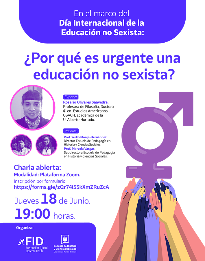 Marcela Vargas, subdirectora de la carrera de Historia y Ciencias Sociales de la UACh destacó que “la charla abierta ¿Por qué es urgente una educación no sexista? busca promover la reflexión en torno a la importancia que tiene la educación no sexista, aún más en medio de una crisis sanitaria que nos mantiene en confinamiento y que ha profundizado todo tipo de desigualdades sociales y de género, sobre todo en la educación”, explicó la docente.