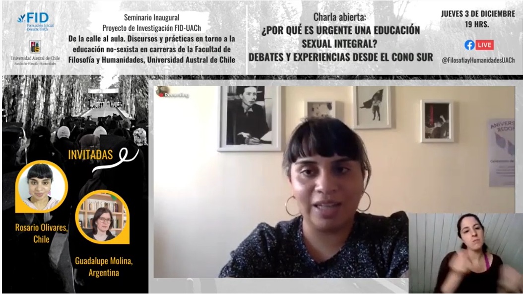 Marcela Vargas, profesora de la UACh y coordinadora del proyecto de investigación, comentó que “Las invitadas a la charla, Rosario Olivares y Guadalupe Molina, permitieron articular las experiencias y miradas sobre la Educación Sexual Integral comparando los distintos contextos, las similitudes y diferencias de Chile y Argentina respecto a su rechazo/implementación de la ley, respectivamente. Hubo activa participación de la comunidad universitaria y de distintas partes del país, lo que nos habla de la relevancia e interés en el tema hoy.”