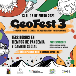 Esta nueva versión de GeoFest, la Escuela de verano en Ciencias Sociales, Territorio y Medioambiente del sur de Chile, se realizará de manera virtual y contará con dos bloques por día entre el miércoles 13 y el viernes 15 de enero 2021. En ellos, investigadoras e investigadores de las ciencias sociales expondrán sus investigaciones en curso y resultados que incidan de manera directa en la realidad del sur de Chile.