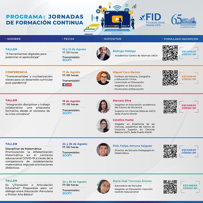 El Programa de Formación Inicial Docente de la Universidad Austral de Chile, invita a una seria de talleres y a una conferencia que se realizarán durante el mes de agosto dirigidas a profesoras y profesores de establecimientos educacionales.