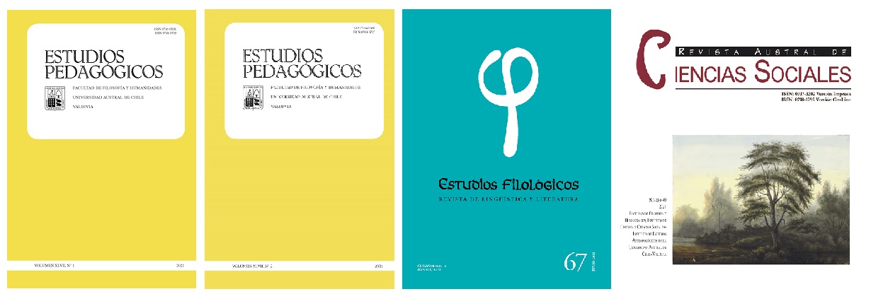 Es muy grato anunciar a la comunidad universitaria que durante el primer semestre del 2021, las revistas de investigación académica de la Facultad de Filosofía y Humanidades: Estudios Pedagógicos, del Instituto de Ciencias de la Educación; Estudios Filológicos, del Instituto de Lingüística y Literatura; y la Revista Austral de Ciencias Sociales, de los Institutos de Historia y Ciencias Sociales y de Estudios Antropológicos; continuaron con su prestigiosa labor. En un período convulsionado por variados factores externos e internos (como la redacción de la nueva Constitución, la continuidad de la pandemia COVID-19 y la elección de la decanatura en la universidad, por ejemplo) las revistas mantuvieron su ritmo de publicación semestral. A su vez, es relevante indicar que, en el actual proceso que se encuentra el país, la divulgación de las disciplinas de humanidades y ciencias sociales representan un gran aporte al debate y reconocimiento de temáticas contingentes.