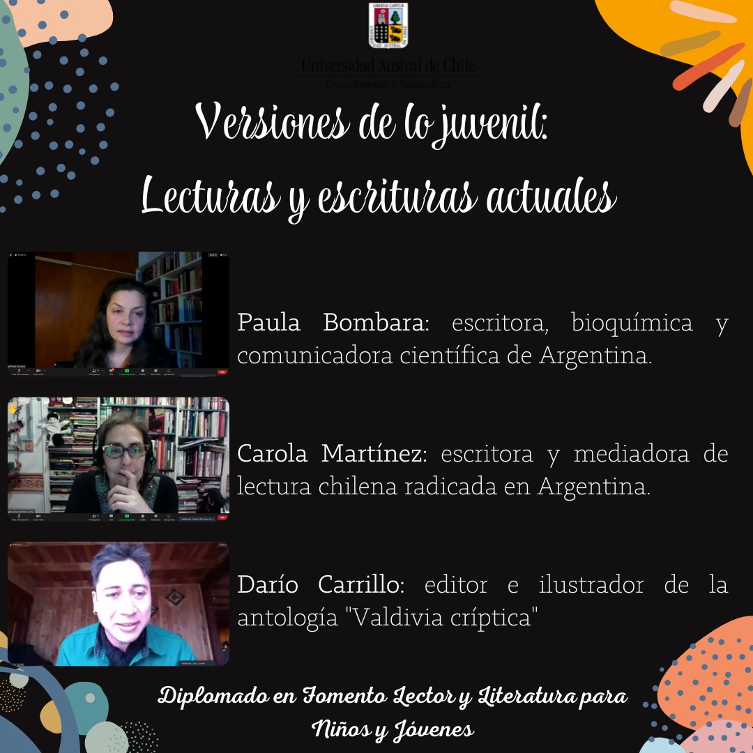 Hace unos días, en el marco del Diplomado en Fomento Lector y Literatura para niños y jóvenes en su versión 2021, se desarrolló el conversatorio “Versiones de lo juvenil: Lecturas y escrituras actuales” como hito de finalización del Módulo III: Libros y literatura para jóvenes a cargo del docente Dámaso Rabanal, perteneciente al Instituto de Ciencias de la Educación de la Facultad de Filosofía y Humanidades de la Universidad Austral de Chile.