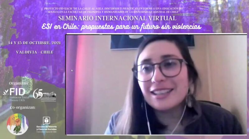 Con una amplia convocatoria se realizó el Seminario Internacional Educación Sexual Integral en Chile: Propuestas para un futuro sin violencias los días 14 y 15 de octubre, la actividad que se desarrolló en formato virtual y fue transmitida por el canal de Youtube del FID UACh, contó con la participación de organizaciones sociales vinculadas a la temática de Educación Sexual, Feminismos y Diversidad.