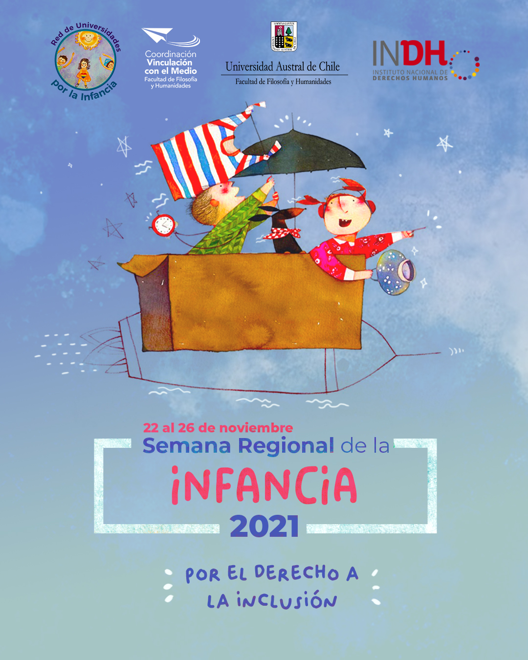 Entre el lunes 22 y viernes 26 de noviembre se llevará a cabo una nueva versión de la Semana Regional de la Infancia, impulsado por la Universidad Austral de Chile a través de la Facultad de Filosofía y Humanidades y, que cuenta con el apoyo del Instituto Nacional de Derechos Humanos (INDH) y la Red de Universidades por la Infancia (RUPI).