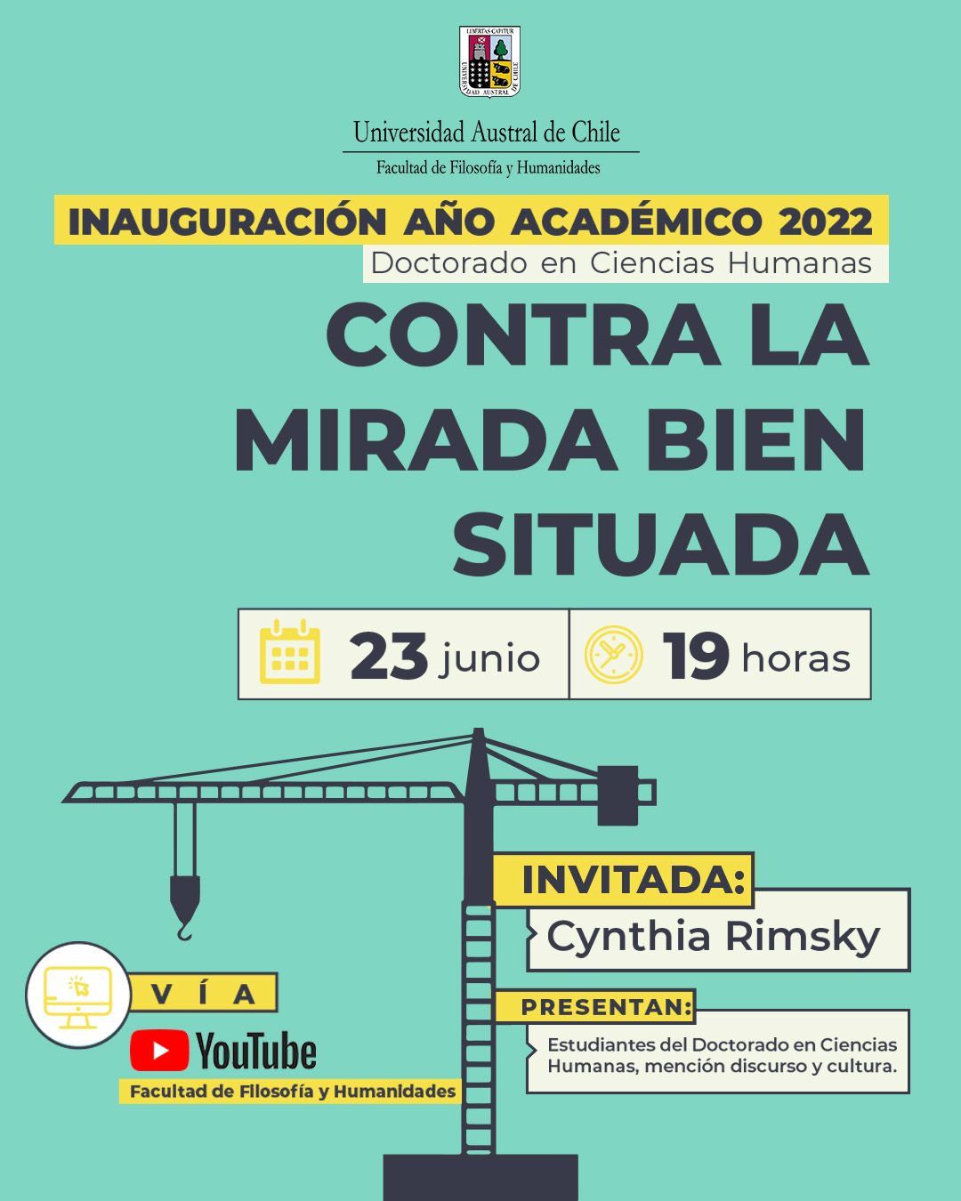 La jornada será presentada por estudiantes del programa antes mencionado y se llevará a cabo el jueves 23 de junio, a las 19:00 horas. La actividad se realizará de manera telemática y será transmitida en vivo a través del canal de YouTube de la Facultad de Filosofía y Humanidades (Humanidades UACh).